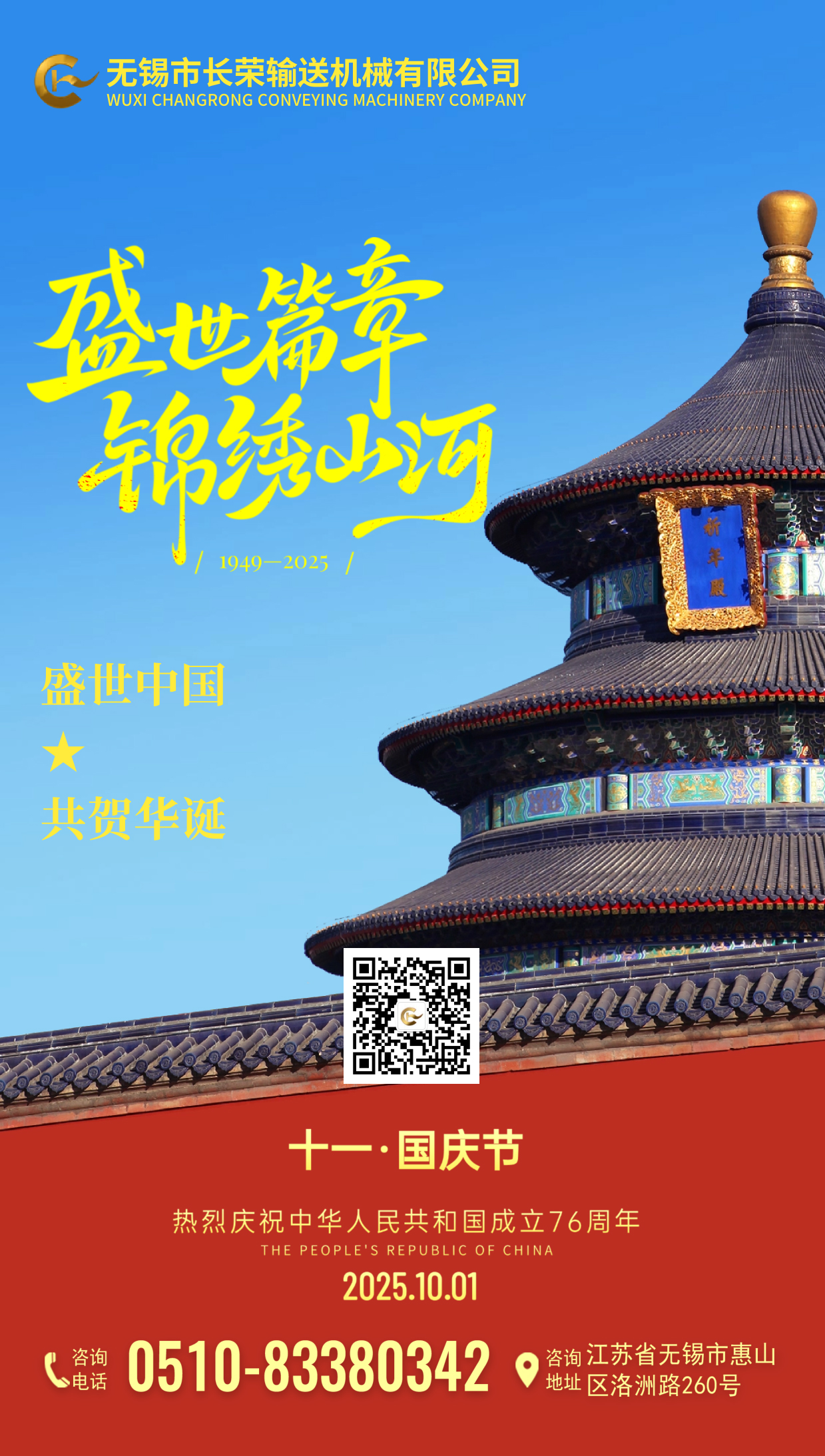 禮贊祖國華誕!無錫市長(zhǎng)榮輸送機(jī)械祝祖國繁榮昌盛! |